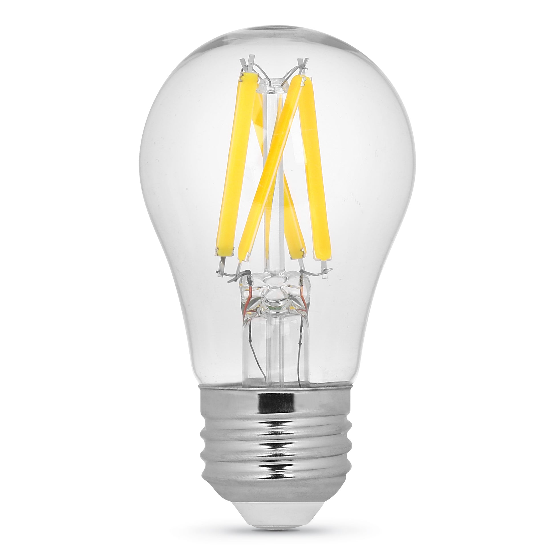 - Enjoy all the benefits of advanced LED energy-saving technology with the Feit Electric BPA1560/927CA/FIL/2 2-Pack 60W A15 LED Light Bulbs. This 2700K soft white bulb is dimmable and will replace a 60-watt equivalent incandescent bulb. It produces a similar light output (750 lumens), uses 8 watts of electricity and up to 87% less energy than a standard incandescent light bulb. Get instant on to full brightness with relatively cool running performance. Feit Electric A15 light bulbs have an average life of 15,000 hours / 13.7 years are RoHS compliant and are 100% mercury free. Choose a dependable bulb for chandelier and decorative lighting for residential or commercial applications.