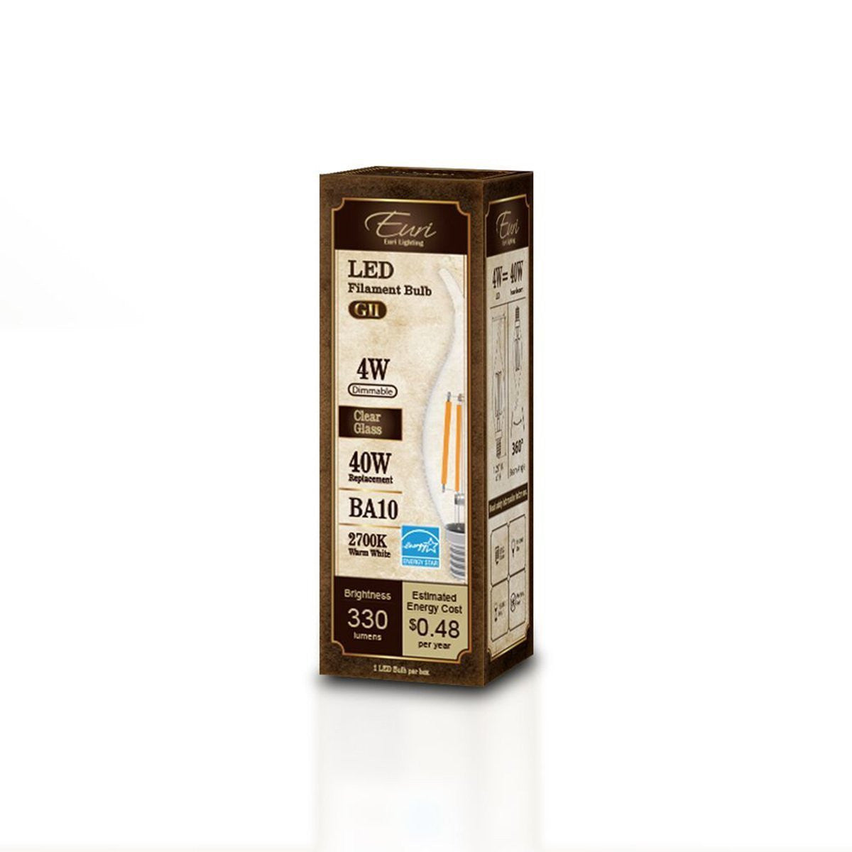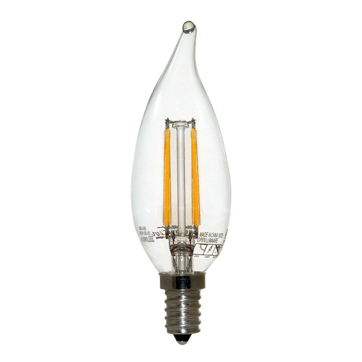 This 4 Watt LED filament bulb replaces a 40 Watt incandescent bulb. Its vintage filament style mirrors the aesthetic of classic light bulbs while providing all the benefits of LED's energy efficiency and long-lasting lifespan. Features include dimming options and 360° beam spread. Ideal for use in chandeliers and other home lighting fixtures.
