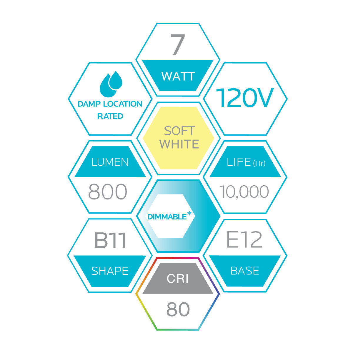Luxrite LR21634 100 Watt Equivalent 7W 800 Lumens 3000K Filament Blunt Tip Candelabra Base Dimmable LED Light Bulb