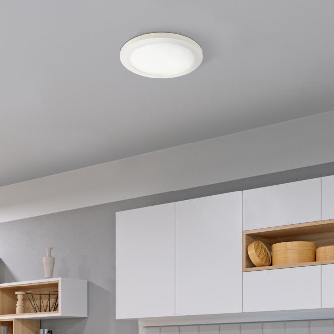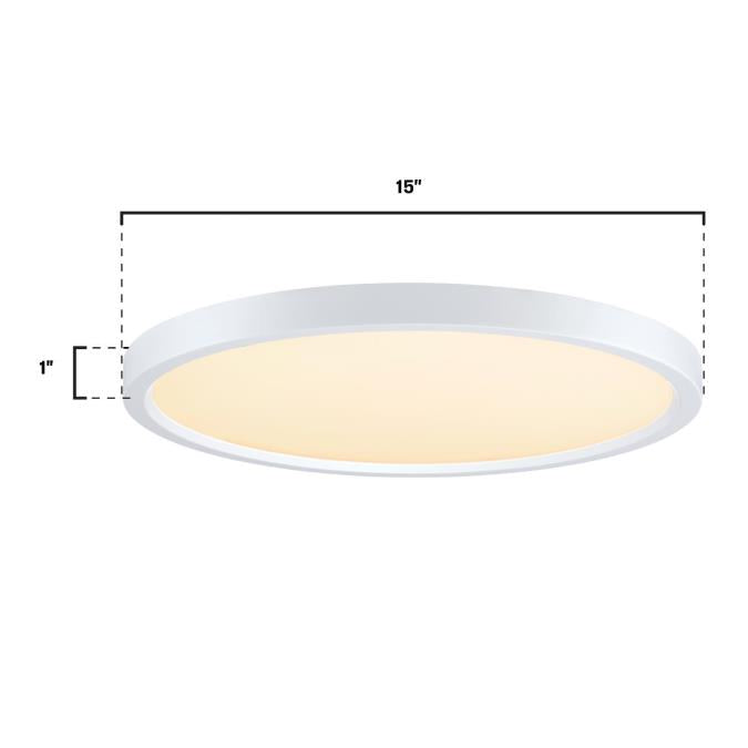 The sleek, low-profile, 15-inch round fixture features a white finish and acrylic shade for a seamless fit and modern flair in any home area. This LED ceiling light fixture is a maintenance-free, long-lasting, and energy-efficient replacement for incandescent ceiling fixtures.